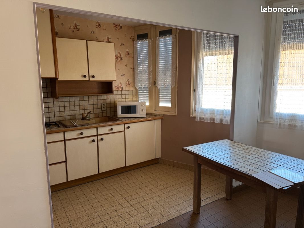 Appartement F2 ,état imp,avec cuisine équipée ouverte sur le séjour - 1 chambre avec placard -salle debain et 1 wc indépendant -1 buanderie - Situé dans un environnement calme comportant 3 appartements sur le palier .porte sécurisée avec interphone.