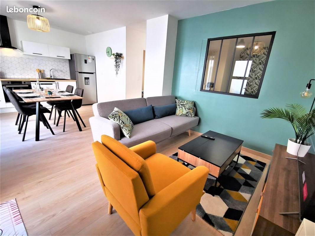 Très bien placé ! Situé à 100m à pied du centre-ville, dans un immeuble calme, au rdc avec son entrée indépendante. Appartement crée à neuf en 2023, au rdc (entrée avec 2 marches d’escalier), intégralement équipé avec du mobilier neuf et de qualité (canapé, fauteuil, table et chaises, grande Tv 4K, meuble Tv, table basse, lits 140x190 avec matelas neufs). L'appartement se compose : -d'un séjour/salle à manger, d’une cuisine équipée avec rangements (four pyrolyse, hotte, plaque vitrocéramique, micro-onde, Nespresso, bouilloire, frigo et congélateur Samsung, lave-vaisselle, lave-linge avec fonction séchante) -d'une salle de bain de standing avec douche et wc, sèche-serviette -de 2 chambres équipées d’un bureau. Un dressing et une armoire viendront compléter les chambres. Vaisselle, accessoires de cuisines, table à repasser et fer à repasser intégrés. Isolation intégralement refaite, fenêtres avec isolation thermique renforcée. Chauffage avec radiateurs neufs à inertie sèche pilotable par wifi via une application. Ballon d’eau électrique. Fibre optique installée. Location meublée. Loyer Hc 640 € + 10 € de charges (ordures ménagères) Pour plus d’informations veuillez me