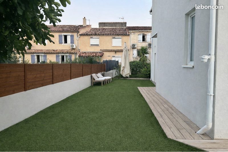 Maison de 135m2 avec une salle de bain en bas avec douche et une salle de bain avec baignoire à l’étage, 2 toilettes, 4 chambres, 1 en bas 14m2 3 en haut (14 14 et 25 avec dressing de 5m2) placard dans toutes les chambres et dans le couloir de l’étage sur toutes longueurs. Climatisation en bas et en haut. Salon cuisine de 45m2. Vis à vis sur le jardin ouest. En fond d’impasse, très sécuritaire.