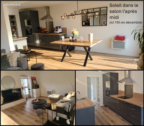 En plein bourg du Pallet, logement T4 lumineux avec grande terrasse exposée Sud-Ouest et jardin. T4 entièrement refait à neuf en 2023 avec sa grande terrasse de 39m2 et son jardin. Le logement est au 1er étage et fait 77m2 avec 3 chambres spacieuses ayant chacune leur dressing (10,27m2, 11,16m2 et 11,23m2) Salle d'eau / wc indépendant / buanderie avec grand placard 5,52m2 / séjour ouvert sur cuisine aménagée et équipée (hotte, plaque induction, four et lave-vaisselle) Pas de garage (nombreuses places de parking à côté) Annexe box de stockage de 8,75m2 avec éclairage, prise électrique et robinet d'eau (pour vélo, tondeuse, etc) Estimation des couts annuels d'énergie du logement entre 438 et 592 euros par an Loyer 940 euros Dépôt de garantie : 940 € Libre au 15 Février 2026 Gare Sncf Le Pallet à 3 minutes en voiture (5min en vélo), à 8 minutes du lycée Charles Peguy, 5 min à pieds des écoles primaires et 30 minutes en voiture de Nantes