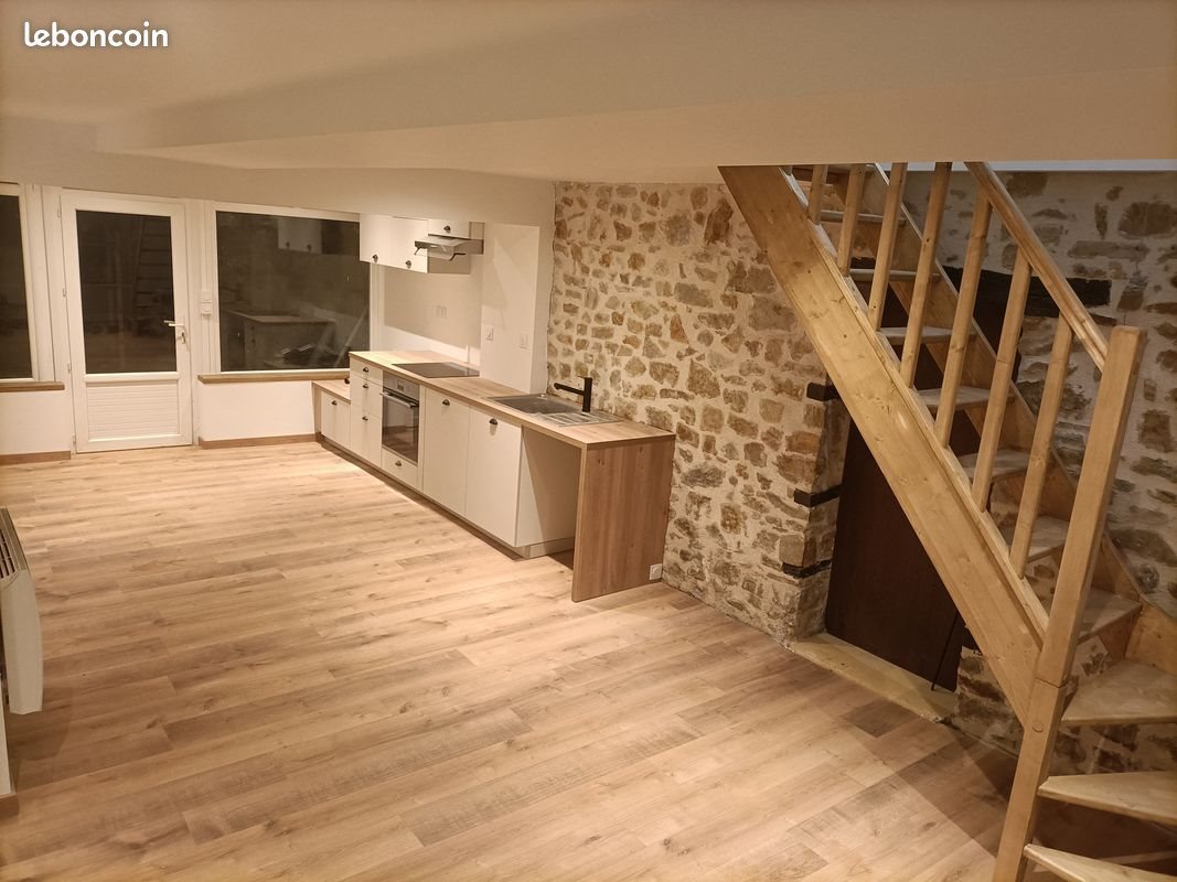 Maison 3 pièces 60 m² Maison entièrement rénovée qui se compose d'une pièce de vie avec cuisine aménagée et équipée (four, plaque, hotte), deux chambres (dont une à l'étage), salle d'eau, Wc séparé. Terrain d'environ 120 M2, pelouse et terrasse béton avec abris de jardin Libre début janvier 2026. Loyer de 570€ (hors charges : eau , électricité). Dépôt de garantie : 570 €.