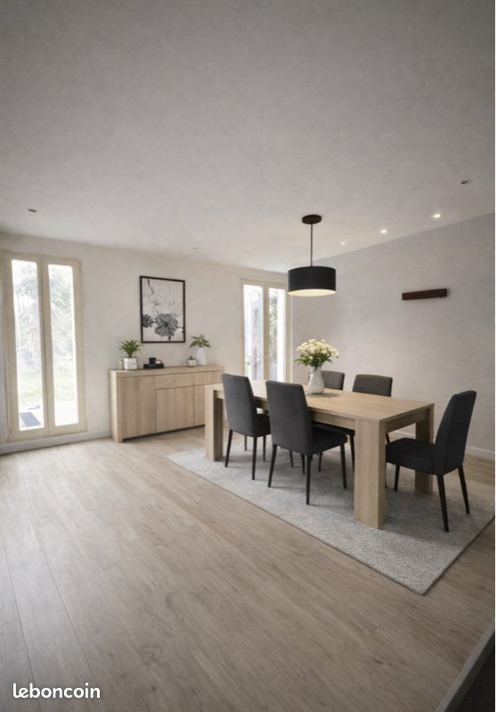 Tomblaine À la frontière de Saint-Max, à seulement quelques minutes à pied du trolley, des commerces et du Lido, venez découvrir cette maison semi-mitoyenne d’environ 150 m², offrant de beaux volumes et un fort potentiel. ✅ Composition : ? Rez-de-chaussée : Belle pièce de vie chaleureuse avec salon / salle à manger et cuisine ouverte. ? 1er étage : • 3 chambres (dont une actuellement aménagée en dressing) • Salle de bain complète avec baignoire + douche • Wc ? 2ème étage : Grande suite parentale à terminer, avec : • espace chambre • salle d’eau (douche + vasque) ✅ Annexes & extérieur : • Cave avec espace buanderie • Grand garage indépendant • Jardin d’environ 80 m² avec terrasse • Stationnement possible ? À noter : Les photos présentées ont été redécorées par Ia. Les matériaux (sols, murs, cuisine) ainsi que les volumes sont fidèles à l’état actuel de la maison. Des travaux restent nécessaires pour exploiter le plein potentiel de cette maison.