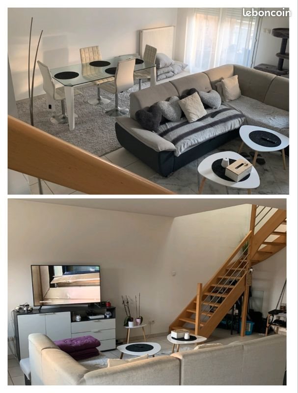 Charmant T3 Duplex situé au dernier et 3e étage d'une résidence calme de 7 appartements, sans ascenseur. Le logement est tout d'abord constitué d'un grand séjour salon, salle à manger donnant sur une terrasse sans vis à vis. La cuisine est composée de plaques de cuisson au gaz de ville, d'un four, lave vaisselle, frigo et micro-ondes. Le logement est chauffé par une chaudière gaz. La fibre est installée dans le logement. À l'étage, deux chambres (l'une est plus grande que l'autre) et une salle de bain avec un 2e wc, baignoire et douche, sèche-serviette. Garage individuel fermé de 20m2 et place de parking. Disponible à partir du 18 avril 2026. Coût du logement par mois - Charges de 40€/mois qui comprennent l'entretien des espaces verts, des communs, l'électricité des communs. - Loyer de 750€/mois hors charges. - Ramassage des ordures ménagères : estimation de 10€/mois, à voir en fonction du nombre de personnes composant le foyer (abonnement géré par le locataire auprès de la Communauté de Communes) - Consommation gaz/électricité estimation de 120€/150€ par mois en fonction du chauffage et de l'abonnement (géré par le locataire également). Étant donné que le logement possède du parquet dans certaines pièces, les animaux, notamment nos amis les chiens, sont malheureusement à éviter dans cet appartement. N'hésitez pas à me via la messagerie et par téléphone afin d'obtenir des informations et/ou photos complémentaires.