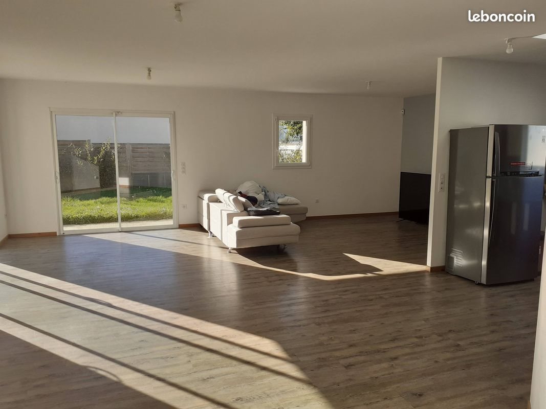 A louer. Bail (meublé). Maison neuve type T4-5 sur 621m2 de terrain. Proche centre et transports bus N°27, 30, C9 et Ter pas enchantés. Au calme dans une impasse. De plein pied, normes handicapes 3 chambres. Grand salon avec baies vitrées terrasse, salle d'eau et toilette séparée, cuisine aménagée. Jardin, parking, garage. Loyer 1500 euros charges comprises