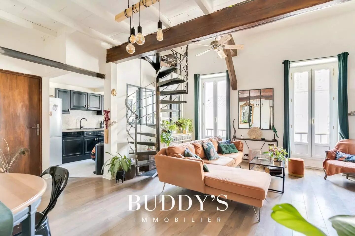 Duplex 3 pièces 88 m² Au sein d’une petite copropriété, venez découvrir ce charmant duplex de 88 m² situé au premier et dernier étage, offrant calme et intimité. L’Appartement séduit par son cachet, apportant une atmosphère chaleureuse et pleine de caractère. Il propose un bel espace de vie lumineux avec une cuisine semi-ouverte sur le séjour, idéal pour des moments conviviaux. À l’étage, l’espace nuit est particulièrement bien agencé avec un coin bureau, parfait pour le télétravail, ainsi que deux chambres. L’Une d’elles dispose d’un coin cabinet de toilette et d’un placard de rangement intégré, alliant confort et praticité, tandis que la seconde chambre offre un cadre calme et reposant. Une salle de bains fonctionnelle (douche et baignoire), de nombreux rangements, la climatisation, le double vitrage ainsi que de beaux volumes viennent compléter ce bien plein de charme. Un appartement au style unique, idéal pour les amateurs de lieux de vie avec personnalité ✨ Surface : 88 m² Date de réalisation du diagnostic énergétique : Consommation énergie primaire : 112 kWh/m²/an Consommation énergie finale : 59 kWh/m²/an Montant estimé des dépenses annuelles d'énergie pour un usage standard : entre 890 € et 1 270 € sur les années 2021, 2022 et 2023 (abonnements compris). Les informations sur les risques auxquels ce bien est exposé sont disponibles sur le site Géorisques :