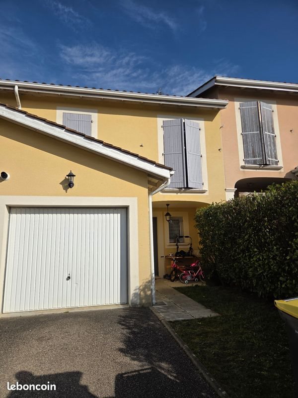 Je loue cette maison mitoyenne de 103m² habitable située à Massieux dans un quartier tranquille, Construction de qualité sur 2 étages, elle est composée de : un séjour avec cuisine ouverte de 27.88m² une chambre de 11.26m² une chambre de 12.31m² une chambre de 10.47m² une chambre de 10.64m² une salle de bain de 3.29m² une salle d'eau de 2.12m² un Wc à chaque étage En extérieur : une place de parking un garage de 14.66m² un porche de 5.36m² une loggia de 7.16m² une terrasse d'environ 40m² et un terrain d'environ 40m² Le tout sur une parcelle d'environ 204m² Le loyer mensuel est de 1 315€ charges comprises Chauffage au gaz. Classe énergie B - Classe climat C. Maison disponible début avril. N'hésitez pas à me pour plus d'informations ou pour organiser une visite.