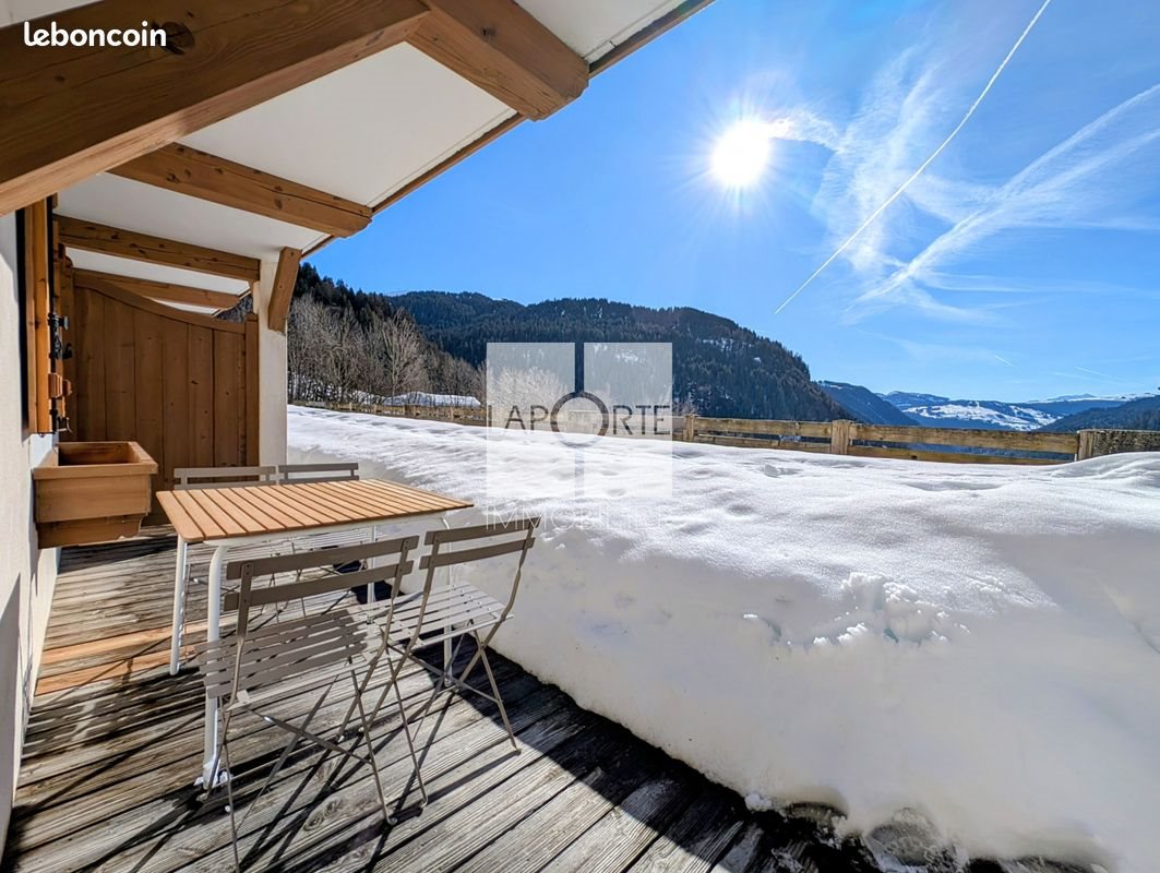 Appartement 2 pièces 35 m² Découvrez cet appartement meublé, 2 pièces avec double cabine de 35m2 au rez de chaussée avec terrasse, offrant de belles prestations. Auncuns travaux à prévoir. Le bien se situe dans une résidence de standing au calme. Exposition Sud avec une vue magnifique sur les montagnes, vous profiterez d'une belle luminosité dans l'ensemble du bien. Il se compose d'un séjour avec une cuisine ouverte équipée récente, d'une chambre, de deux coins cabine, d'une salle de bain, d'un wc séparé et d'une terrasse de 10m2. Un grand casier à ski et un box sécurisé de 15m2 complète de lot. Chauffage au sol hors gel électrique collectif et radiateurs électriques individuel. Eau chaude individuelle avec un ballon électrique. Centre Village de La Giettaz à 10 min à pieds, station de ski Le Plan (Domaine Les Portes du Mont-Blanc) à 5min, station de ski La Clusaz Manigod à 15 min, Megève à 25min, Annecy et Albertville à 50min. Contact : Jimmy Elizano, agent commercial Mobile : [Coordonnées masquées] / Mail : [Coordonnées masquées] Les informations sur les risques auxquels ce bien est exposé sont disponibles sur le site Géorisques : Surface : 35 m² A propos de la copropriété : Pas de procédure en cours Nombre de lots : 261 Date de réalisation du diagnostic énergétique : Consommation énergie primaire : 228 kWh/m²/an Consommation énergie finale : 0 kWh/m²/an Montant estimé des dépenses annuelles d'énergie pour un usage standard : entre 800 € et 1 130 € sur les années 2021, 2022 et 2023 (abonnements compris).