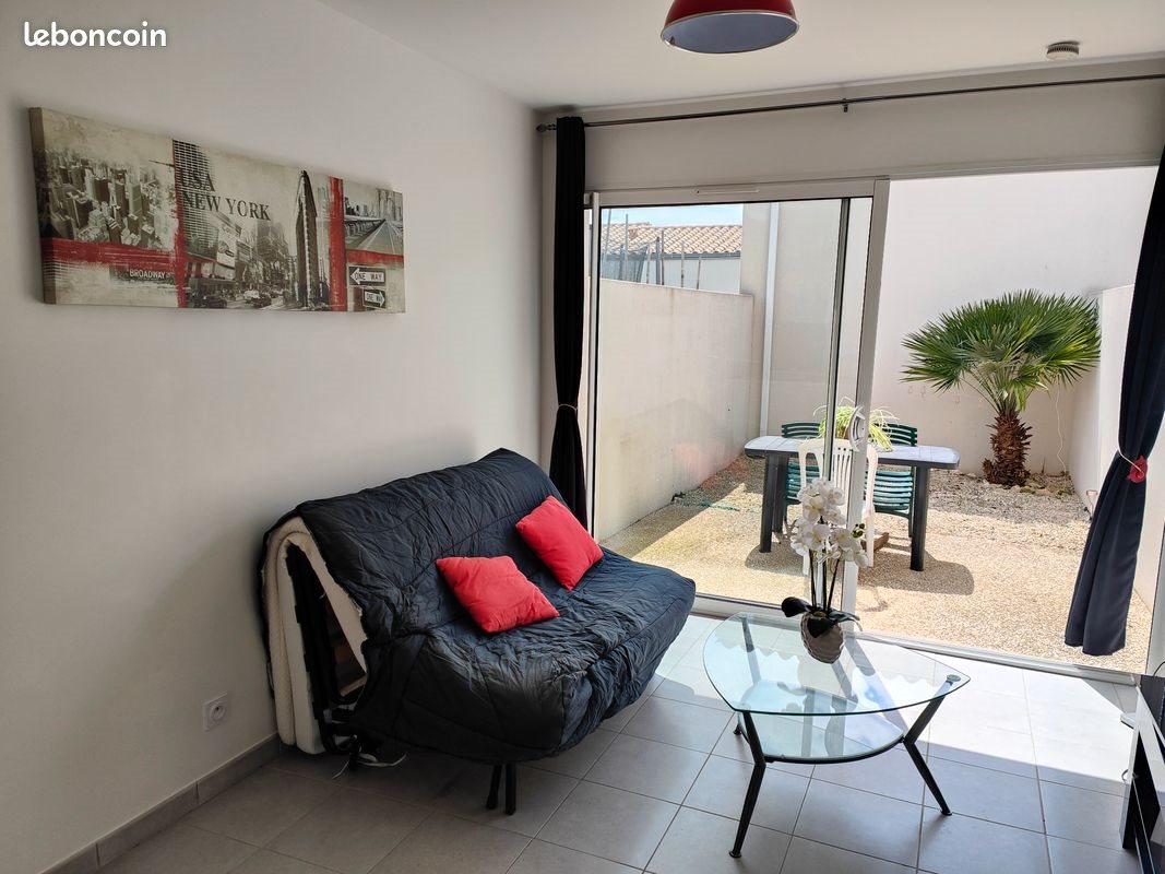 Studio de 27 m² très lumineux Meuble Calme en retrait de la route, Dans une résidence sans étage, de 3 logements et un cabinet médicale, de 2014, Disponible le 28 mars 2026 - terrasse sans vis à vis et mobilier de jardin - grande cuisine équipée de plaques vitrocéramiques, frigo, micro ondes, vaisselles, cafetière, bouilloire, grille pain - table dans la cuisine, amovible pour 2 personnes et 2 tabourets - salon avec convertible 2 places de 2024 + convertible 1 place qui sert de pouf, Tv et bureau, chaise de bureau, étagère, prise Tv et téléphone - placard avec penderie - machine à laver et aspirateur - salle de bain avec douche à l'italienne et wc, vasque et meuble sous vasque - entrée avec meuble à chaussure. Une Place De Parking Devant La Residence. Compteur d’eau et l’electricité individuel a la charge du locataire Provisions sur Charges : la taxe d’ordure ménagère et l’entretien de la pompe de relevage (système pour le tout a l’égout de la résidence) : 17 Euros loyer 580e + provisions sur charges = 597e