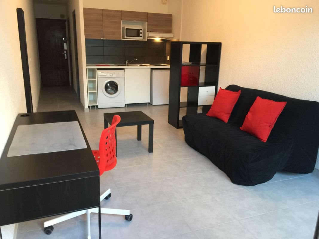 Studio 26,30 m2 meublé au 1er étage, entièrement rénové idéalement situé, dans une résidence arborée, calme et sécurisée. A 500 mètres de l'entrée des facultés des Lettres et de Sciences, Tram St Eloi à 10 minutes à pied ou plus près Tram ligne 5 Université Paul Valéry, bus en face de la résidence menant directement au centre ville et la gare. Cuisine contemporaine entièrement équipée (plaque vitro, réfrigérateur, micro-onde et lave linge). Le studio dispose également d’un dressing et d’une belle terrasse ensoleillée de 7 m2 sans vis a vis donnant sur un parc. Place de parking libre. Prise de rendez-vous uniquement par téléphone. Disponible à partir du 20 avril, possibilité de voir avec le locataire si il souhaite partir plus tôt ? Situation 585 rue de l'Aiguelongue. Chauffage électrique et chauffe eau électrique Loyer Hc: 580 euros Charges : 40 euros (charges courantes de l'immeuble avec l'eau et la taxe d'ordures ménagères)
