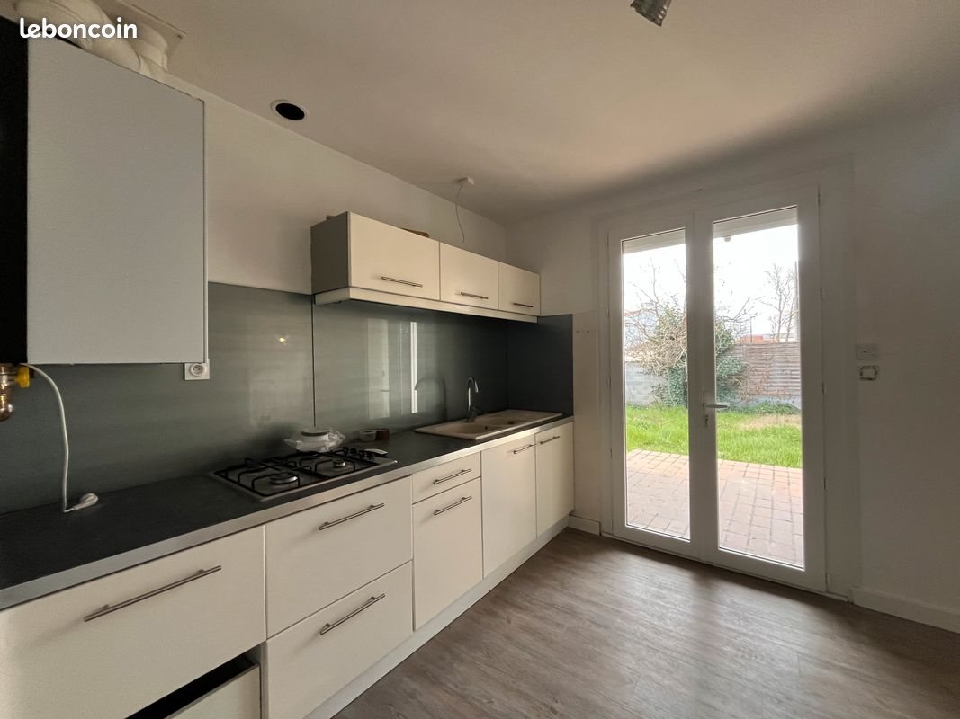 Portet Sur Garonne: Maison T4 de plain pied composée d'une entrée avec placards, une cuisine aménagée et équipée, un séjour donnant sur une terrasse, 3 chambres dont une avec placard, une salle de bains, Wc séparés, et garage. Vous bénéficierez également d'un garage et d'un grand jardin. Chauffage au gaz.