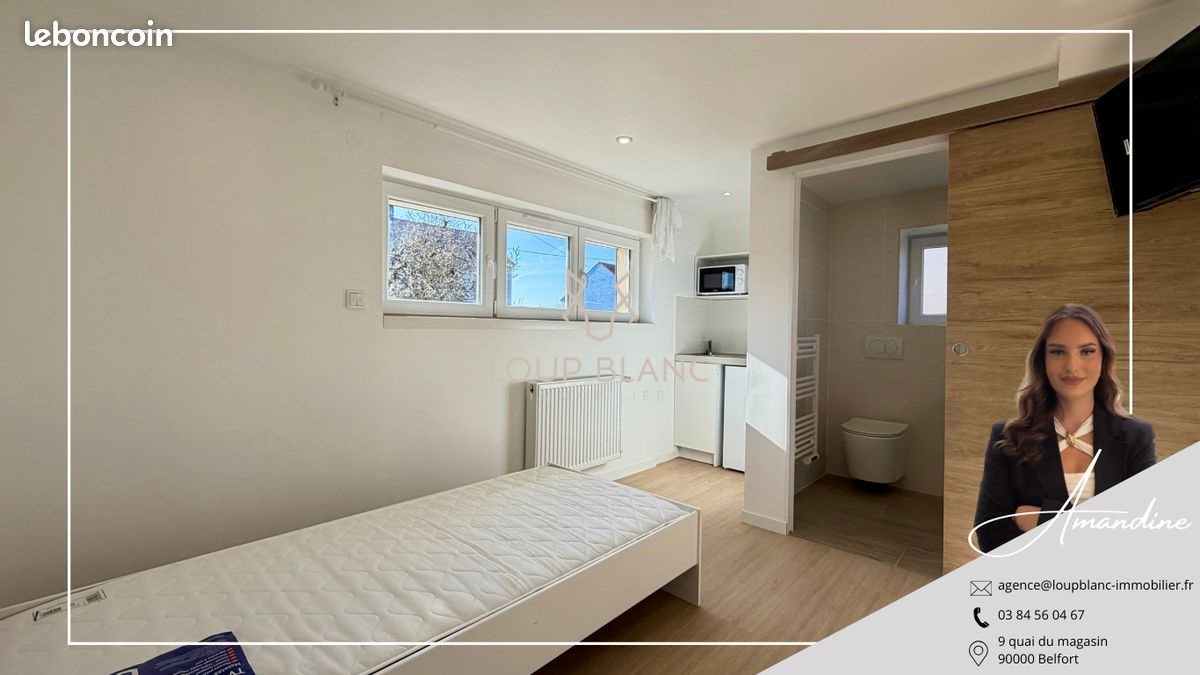 Studio 1 pièce 13 m² Loup Blanc Immobilier vous propose à la location ce studio entièrement refait à neuf, situé en rez-de-chaussée d'une maison à Belfort. Entièrement meublé et prêt à vivre, il se compose : D'une pièce principale lumineuse D'une petite kitchenette D'une salle d'eau moderne Stationnement facile avec possibilité de se garer juste devant la maison. Loyer : 300 EURCharges : 50 Eur, comprenant l'électricité, l'eau froide et chaude, le chauffage ainsi que les ordures ménagères. À visiter rapidement ! Surface : 13 m² Date de réalisation du diagnostic énergétique : Consommation énergie primaire : 188 kWh/m²/an Consommation énergie finale : 152 kWh/m²/an