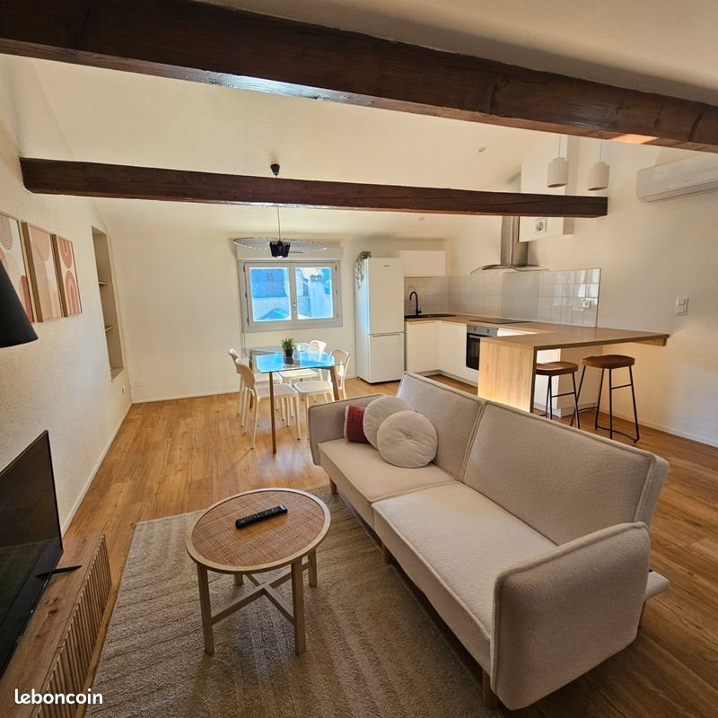 Superbe T3 hypercentre Bagnères-de-Bigorre de 66m2 meublé et refait à neuf. Vrai duplex (pas de mezzanine mais un véritable étage au sein de l'appartement) Emplacement idéal. Localisation : proche de toutes commodités (à quelques pas du Parc des Vignaux et de la Place Lafayette). Appartement : – Au Dernier étage d’une petite résidence de 4 appartements au total (mêmes propriétaires) – Appartement climatisé, calme, lumineux et très agréable – Stationnement gratuit au pied de l'immeuble et parking gratuit à 50m (Parking des Vignaux) – Fenêtres double vitrage – Pas de frais d'agence (particulier) Séjour: – Tv 109 cm – Meuble Tv – Canapé convertible – Table basse - Tapis - Lampadaire Cuisine entièrement équipée : – Plaques induction – Hotte aspirante – Frigo-congélateur – Four - Lave-vaisselle – Nécessaire de cuisine: couverts, assiettes, verres… Coin buanderie : - Machine à laver dans la salle de bain, - Nécessaire d'entretien (balai, seau et serpillière). 1 Grande chambre tout confort: – Lit 160x200cm de très bonne qualité – Tables de nuit et lampes de chevet – Oreillers, couette, alèse - Tapis – Dressing fermé 1 autre chambre tout confort, climatisée, à l'étage du duplex: – Lit 160x200cm de très bonne qualité – Tables de nuit et lampes de chevet - Tapis – Oreillers, couette, alèse – Dressing fermé Salle de bain: - Wc, - Meuble double vasques avec tiroirs, - Baignoire, - Chauffage soufflant mural. Il n'attend que vous! L’appartement est disponible à partir du 1er mars 2026. Loyer : 740€ charges comprises (720€ de loyer + 20€ euros de provisions charges parties communes). Eau et électricité, à la charge du locataire. Dpe: C et A Dépôt de garantie 1 mois charges comprises car mobilier neuf, pas de frais d'agence. N'hésitez pas à me pour plus de renseignements (photos supplémentaires de l’appartement pouvant être envoyées sur demande). Curieux et agences, s'abstenir. 1Er contact par mail.