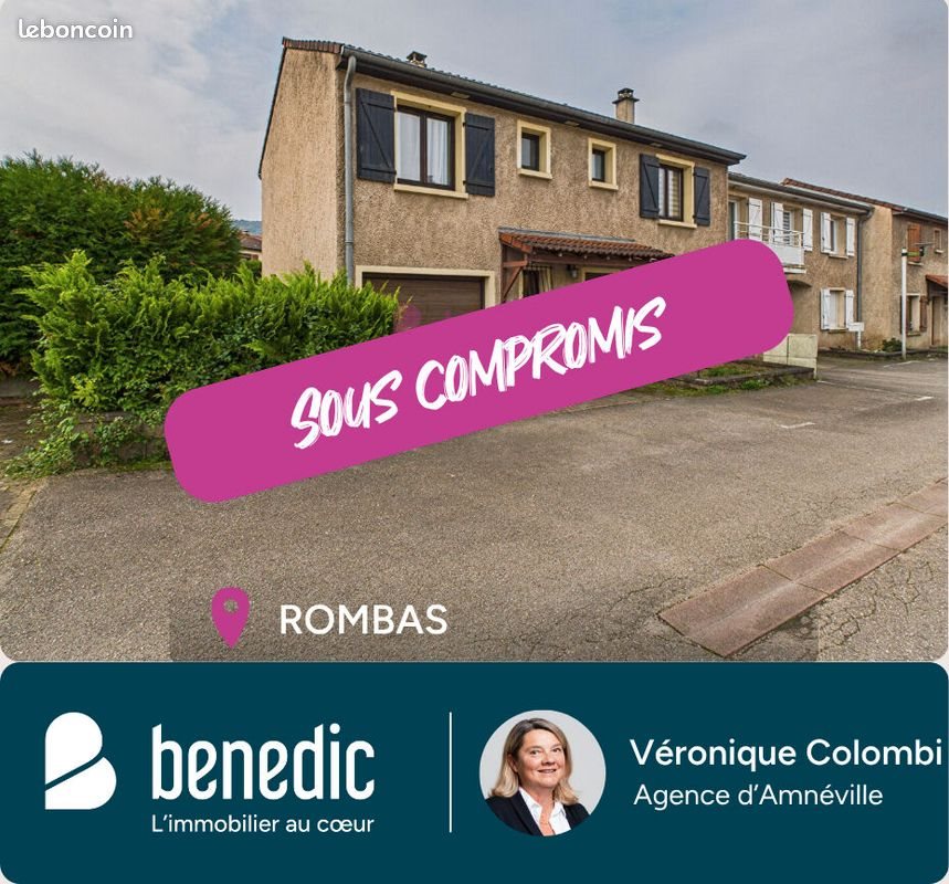 Maison 6 pièces 93 m² 'Sous Compromis' Véronique Colombi, Benedic Immobilier d''Amnéville, est fière de vous présenter en exclusivité cette charmante maison sur Rombas dans un quartier calme à proximité de toutes commodités. Elle dispose : Au rez-de-chaussée, d'une entrée, de toilettes, d'un salon séjour sortant sur une belle terrasse entièrement refaite très récemment, d'une cuisine équipée Schmidt, avec accès terrasse également, d'un garage avec un espace chaufferie buanderie. A l'étage, une salle d'eau, des toilettes, entièrement refaites, 3 chambres et un bureau. Les propriétaires actuels ont fait de ce bureau une 4ème chambre d'enfant! Le potentiel est là, ce sera à vous d'écrire l'histoire de cette maison 3 chambres et un bureau ou 4 chambres....selon vos souhaits! Elle ne comporte aucune anomalie au niveau des diagnostics. Elle est classée D . Pas d'amiante. Bref, vous l'aurez compris elle vient d'être rénovée entièrement , vous pourrez donc juste vous y installer et passer des jours heureux tant à l'intérieur qu'à l'extérieur avec cette belle terrasse et son jardin arboré. N'hésitez pas si vous souhaitez une visite, ce sera avec plaisir! Véronique Surface : 93 m² Date de réalisation du diagnostic énergétique : Consommation énergie primaire : 211 kWh/m²/an Consommation énergie finale : 211 kWh/m²/an