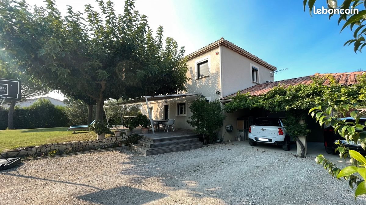 Maison de 139 m² à étage construite en 2009 bénéficie d'un beau terrain constructible clos et arboré de 1236m² exposé plein sud. Cette maison est composée : Rdc : Belle pièce de vie avec double salon/séjour ouvert sur un espace cuisine aménagée et équipée, une buanderie, un Wc. Une suite parentale avec salle d’eau privative. Etage : Deux chambres, une salle de bain et une mezzanine pouvant servir de bureau, salle de jeux ou 4ème chambre. Cette maison dispose d’un chauffage mixte avec une pompe à chaleur réversible à l’étage et un plancher chauffant au rdc, le tout complété par une Vmc double flux et un puit canadien. Exterieur : Portail électrique, terrasse de 70m² ombragée, une piscine carrée de 4mx4m avec terrasse coulissante servant de protection et pool house. Un potager avec abri de jardin. Arrosage intégré avec forage et robot tondeuse. Côté stationnement, elle possède un garage, un abri vélo, un abri couvert pour 2 voitures et un vaste espace de stationnement. Ce bien est équipé de volets roulants aluminium solaires, d’une alarme avec caméra et dispose de la fibre. Proximité Commodités : Ecoles, collège, arrêt de bus, gare, commerces, autoroute, le tous à moins de 5 minutes. Maison lumineuse réalisée par des artisans locaux avec des matériaux de qualités, Dpe du 08/2025. Située dans une impasse calme, idéale pour une famille.