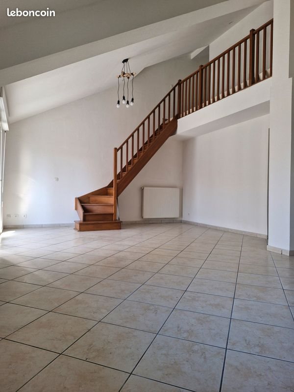 A louer appartement duplex offrant de belles prestations . Il est situé en face de la Mairie , divers commerces , maison médicale , écoles , parkings , bus de ville et gare juste à côté . Il est au 1er et dernier étage de l'immeuble , sachant que celui ci dispose d'une entrée sécurisé par une grille et Dj code . Son exposition est Ouest ( soleil à partir de midi jusqu'au soir ) et il donne à l'arrière de l'immeuble sur une cour et jardin , donc très au calme . L'appartement de 115m2 dispose en plus d'une terrasse privé de 15m2 couverte dont l'accès se fait par la porte fenêtre du salon . Il comprend donc : 1 entrée , qui vous conduira vers un grand salon séjour de 40m2 ouvert sur une cuisine ,1 pièce pouvant servir de dressing avec placard , 2 salles d'eau ( douche et meuble vasque plus emplacement pour y mettre machine a laver )1 toilette . A l'étage : 3 chambres ( 1 chambre de 19m2 avec en plus d un débarras de 15m2 pouvant servir de rangement ou salle de jeux / 1 chambre de 12m2/ et 1 chambre de 11m2 ) Chauffage individuel au gaz . L'entretien doit se faire obligatoirement 1 fois par an par le locataire Vous pouvez également disposer d'un endroit dans la cour pour y mettre si besoin vos vélos etc.....sachant que celle ci n'est autorisée qu'aux locataires de limmeuble et que les chiens y sont interdits. Les charges sont de 50€ par mois , elles comprennent : l'eau , les ordures ménagères , l'électricité et l'entretien du couloir des communs . Le loyer est de 800€ par mois Une caution de 800€ vous sera demandé , ainsi qu'un garant ou un organisme agréé. Dpe en cours , sachant que toutes les peintures de l'appartement complet viennent d'être refaites à neuf , la cuisine , et le sol à l'étage du couloir et des chambres aussi . Me uniquement par téléphone , Merci