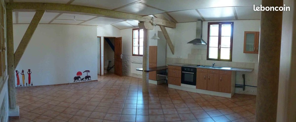 Situé au 1er étage Grande entrée pouvant servir de bureau, séjour avec cuisine partiellement équipée, 2 chambres, salle d’eau, Wc. Chauffage électrique. Grande entrée commune. Possibilité de garer un deux-roues. Caution solidaire demandée. Proche centre bourg, tous commerces, écoles, crèche, collège. Libre 1er mai Prix: 550€ par mois + charges 5€
