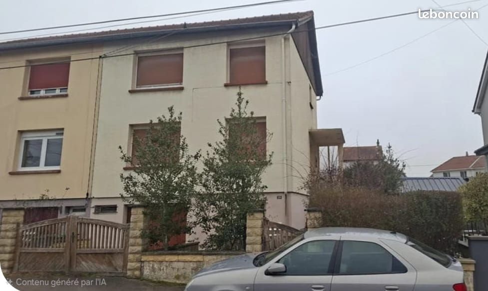 Particulier vend maison de 83 m² située dans le quartier de la Grande Fin à Homécourt. Quartier calme, à proximité des écoles avec arrêt de bus et des autocars scolaires en face de la maison Elle se compose : - au sous sol, d'un grand garage, traversant avec accès direct au jardin, buanderie, chaufferie, vestibule et accès à l'étage - au rez de chaussée, d'une entrée avec placards, Wc, cuisine aménagée, salon-salle à manger, - à l'étage, 3 belles chambres et une salle de bain le grenier repose sur une dalle béton L'ensemble sur un terrain clos de 4 ares 28 avec dépendance constituée d'une maisonnette prolongée d'un abri maçon