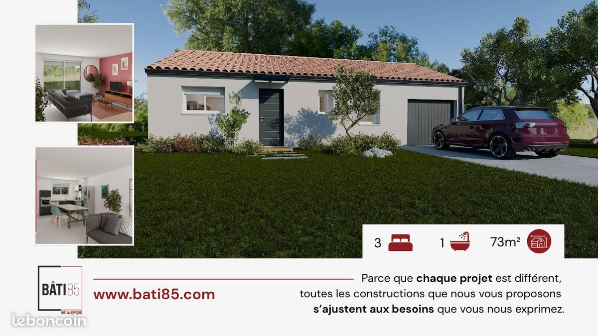 Harmonie 3.080 Gi Bati 85 Nantes Vous souhaitez réaliser votre projet de vie et vivre dans une ville qui respire la tranquillité tout en étant proche de Nantes, Connue pour son cadre rural et ses paysages attrayants. La commune est également caractérisée par sa proximité avec des villes plus grandes, ce qui en fait un lieu agréable pour vivre tout en étant proche des commodités, ce qui concerne les écoles, la commune propose généralement des écoles primaires pour accueillir les jeunes enfants, ainsi que des structures pour l'accueil périscolaire et éventuellement des collèges, des commerces de proximité, des supermarchés, des services de santé, N'attendez plus vite votre agence Bati 85 Nantes Maison Neuve à Construire – 80 m² – 3 Chambres – Re2020 – Avec Garage Avec Bâti 85, constructeur local depuis 1983 Laissez-vous séduire par cette maison neuve à construire, proposée par Bâti 85, constructeur de confiance dans la région depuis plus de 40 ans. Implantée sur un terrain à sélectionner selon vos préférences (étude personnalisée), cette maison allie confort moderne, fonctionnalité et performance énergétique. Caractéristiques principales : • Surface habitable : 80 m² • Conforme à la réglementation Re2020 pour une meilleure efficacité énergétique • Belle pièce de vie lumineuse, ouverte sur l'extérieur • 3 chambres confortables avec espaces de rangement • Salle de bains avec équipements modernes • Garage intégré • Esthétique et idéale pour optimiser l'ensoleillement Personnalisation possible du plan selon vos envies et votre mode de vie. Contactez-Nous dès aujourd'hui pour une étude gratuite de votre projet de construction. Faites confiance à un constructeur de proximité, reconnu pour son sérieux et son savoir-faire. Bati 85 Nantes Référence annonce : Aja 36 Non soumis au Dpe