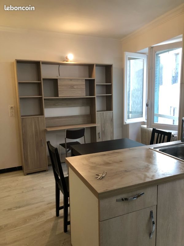Location meublée pour étudiant ou saisonnier Petit studio meublé, cuisinière électrique, frigo/congélateur, micro onde Lit 140, meuble bureau, table, 2 chaises un fauteuil Salle de bain avec douche et Wc Dans zone piétonne, parking gratuit à 5mn Loyer 385€ par mois tout compris (eau, électricité, chauffage)