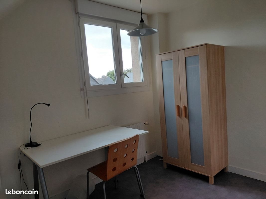 Bruz à 10’ de Kerlan en Bus, Arrêt à proximité immédiate, proche Centre Ville, Idéalement située, Chambre Meublée, Indépendante, à l'étage d'un pavillon comprenant 1 lit, Bureau et chaise. Armoire avec penderie et étagères. Meubles à étagères. Salle d’eau complète + wc Indépendant + Cuisine commune complète comprenant Vaisselle. Plaques Electriques, Frigo Congélateur, Micro Ondes, Cafetière, Table et Chaises, etc... Bus à proximité toutes les 15’ pour Rennes et Kerlan et à 10' du Campus de Kerlan - Gare Sncf à 800 m et 10' En Train de Rennes et8 à 3’ du Campus de Kerlan - Loyer 420 €/mois toutes Charges Comprises : Internet Wifi - Eau - Électricité