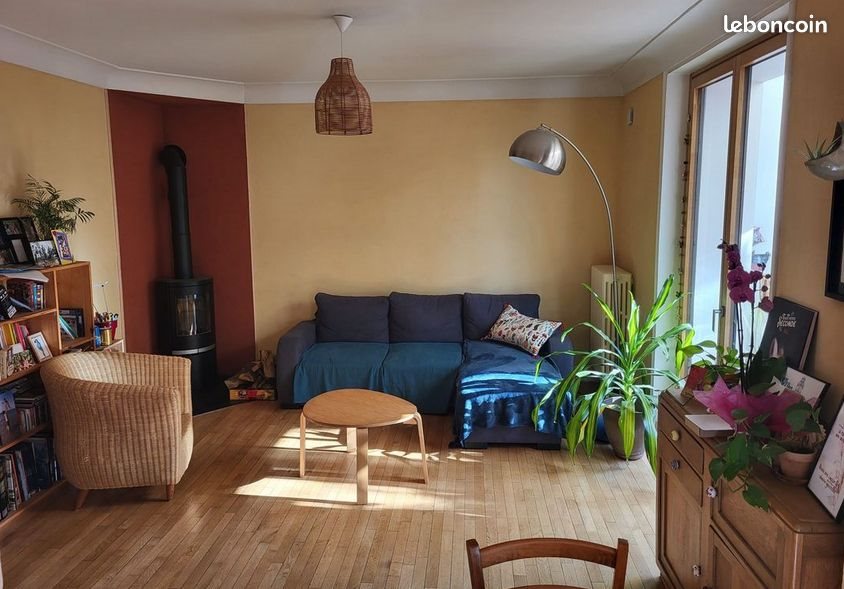 Maison chaleureuse et lumineuse de 121 m² habitables + autres pièces (véranda, garage, sous-sol), récemment rénovée. Matériaux confortables été et hiver (maison pierre, parquet bois anciens, laine de bois, enduits terre), chauffage gaz + poêle à bois. Située dans un quartier calme et convivial (entraide courante et facile entre voisins) en plein centre de Lanester côté rives du Scorff. Proche commerces (très bonne boulangerie au bout de la rue, Leclerc, pizzerias, ..), activités (piscine, salle de spectacle Quai 9, ..), et des bus. Accès rapide au centre de Lorient (10 min) et aux plages (15 min). Composition de la maison : Salon-cuisine avec poêle, véranda (non chauffée) donnant sur le jardin, 3 grandes chambres à l’étage (12-15 m², nous mettrons des lits adultes), bureau, Sdb, 2 Wc (dont 1 toilettes sèches), grande salle au 2ème étage (combles aménagés) pouvant servir de dortoir, bureau, espace détente, home cinéma. Garage à vélos, sous-sol rangement/atelier bricolage/lave-linge, jardin 250 m² avec espace potager et poulailler (poules possibles à garder si souhaité ?, mais non obligatoire). Type de bail : bail mobilité de 5 ou 6 mois (mars à juillet/août 2026, dates à préciser entre locataire et propriétaire) Loyer mensuel : 1 200 € Cc Charges comprises : eau, électricité, chauffage gaz + bois, internet, entretien équipements techniques (chaudière, …). Garantie par garant ou par garantie visale. Si besoin de plus d’informations n’hésitez pas à envoyer un message.