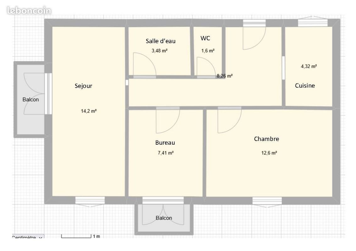 Loue appartement meublé au 2ème et dernier étage, plein centre de Lamalou les Bains. Disponible au 15 janvier 2026. Location Uniquement à l’année. Bail de type meublé, donc 1 an reconductible. T2 de 50m² qui comprend une 3ème pièce de 7.4 m². Plus un placard privatif sur le palier. Grande pièce à vivre avec une fenêtre et porte fenêtre sur petit balcon, très lumineux. Une chambre de 12.6 m² avec grand placard. Un bureau de 7.4 m² qui peut faire office de chambre de jeune enfant, pièce avec porte fenêtre et balcon. Salle d’eau, douche. Wc séparé. Cuisine équipée, indépendante. Chauffage et eau chaude au gaz. Loyer 600 Euros plus charge 35 Euros par mois (régularisation annuelle). Charges comprennent : entretien et électricité des communs, taxe ordures ménagères et entretien annuel de la chaudière à gaz. A votre charge : eau, gaz et électricité (compteur indépendant). Caution : 1 mois de loyer soit 600 Euros. Références demandées : 3 bulletins de salaires et contrat de travail Cdi.