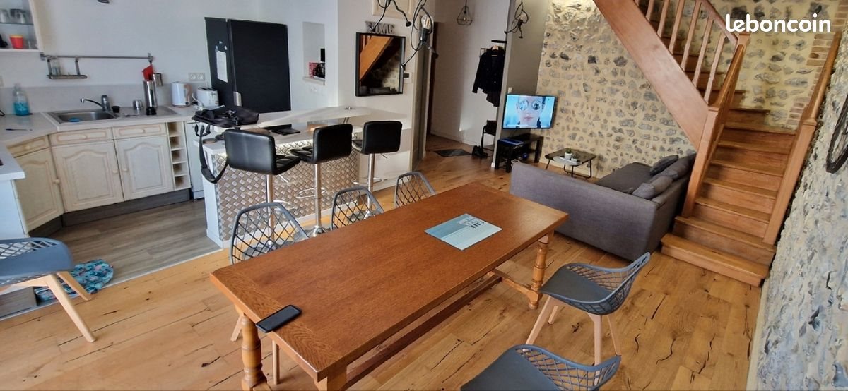 Appartement meublé rénové en 2020,au 1er étage d un petit immeuble collectif ,se compose de: Une grande pièce de vie avec cuisine équipée ouverte (table induction, lave vaisselle,hotte,four combiné),salle, salon(télépar satellite),d un Wc (lave linge), a l'étage de 2 belles chambres (un lit double,2 lits simple) ,d un espace détente pouvant servir de bureau ou petite chambre(banquette lit) et d une salle de bain avec douche italienne . Chauffage et production d'eau chaude électrique (programmation centralisée),videophone d'entrée,volet roulant sur l ensemble des fenetres , stationnement gratuit tout autour du logement ,nombreux commerce de proximité, gare a 10 min a pied quartier très calme . Garant physique obligatoire Premier contact par mail