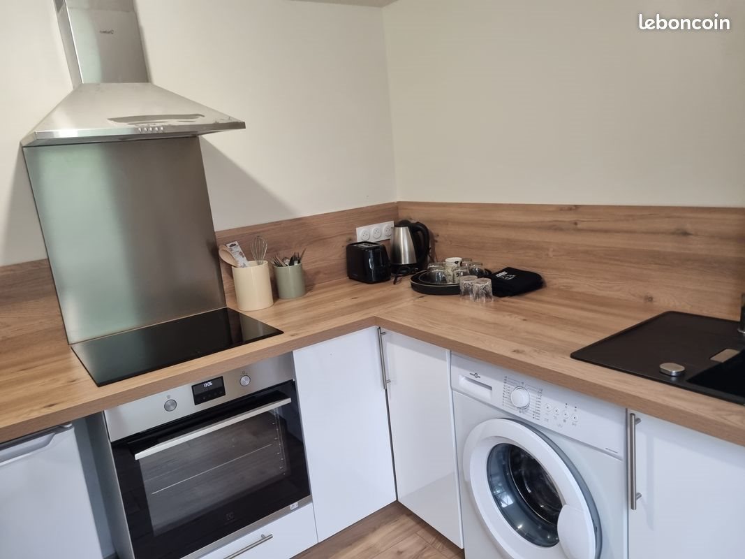 Bonjour, Je loue un studio au rez de jardin de ma maison située à 7 kms de Vannes. Il comprend une cuisine équipée (plaques induction, four, hotte, frigo, machine à laver), une salle de bain avec douche, toilettes et meuble lavabo, miroir) et une chambre séparée avec lit double et armoire. Le tarif est de 400 euros charges comprises (eau, électricité, internet wi fi). Il n'y pas de télévision. Il est préférable d'aimer les animaux car j'ai un cavalier king charles et un chat (mais ils ne rentrent pas dans le studio, seulement la véranda et le jardin) Au plaisir de vous accueillir, Kristen