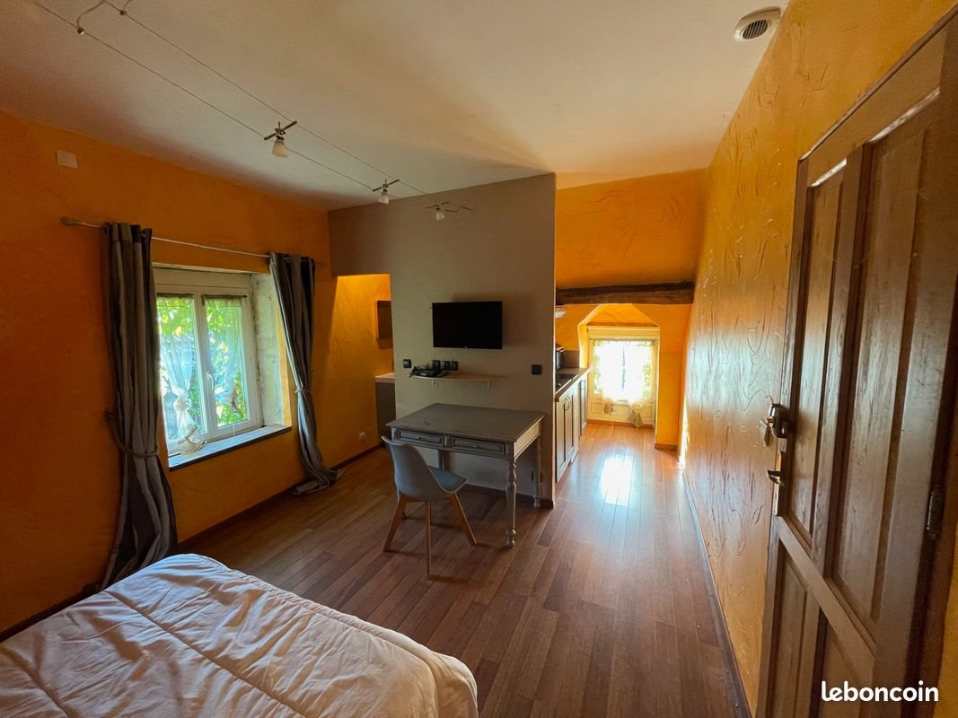 Loue studio indépendant dans propriété privée, situé au calme à 500 m de la rocade porte de Givaudins. Pièce à vivre avec parquet, cuisine ouverte équipée plaques, réfrigérateur, mini-four, vaisselle, lit 140, bureau, Tv. Salle de douche avec lavabo, Wc avec machine à laver. Internet, eau, électricité et chauffage compris. Place de parking devant, bus à 200 M gratuit, direct lycée Jacques Coeur et Sainte-Marie uniquement pour étudiant ou alternant. Autoroute 8 minutes, lycée Jacques Coeur et hôpital 10 minutes. Loyer 460€ tout compris avec internet