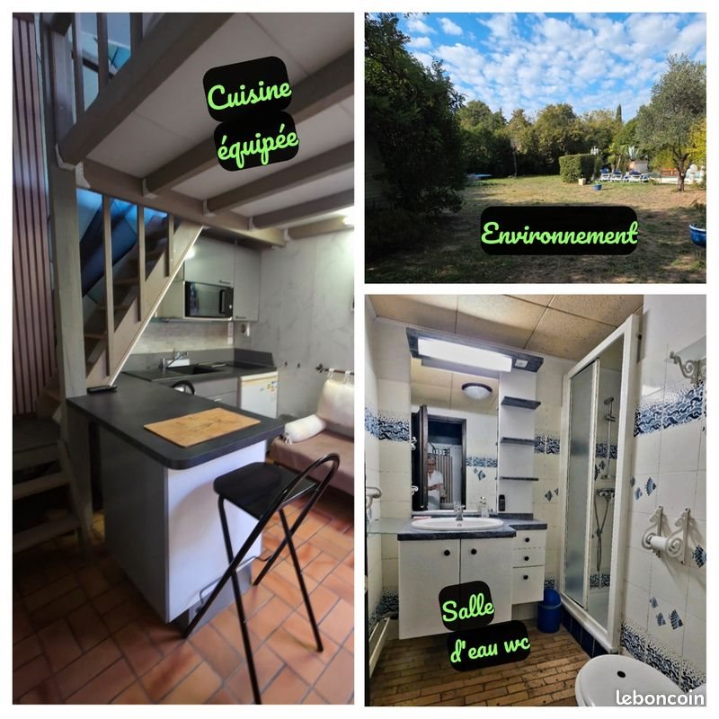 Je loue ce charmant studio/2 pièces meublé de 32m² avec mezzanine, entièrement rénové situé dans une maison individuelle à Mougins, St Martin construite en 1980. Ce studio comprend une pièce principale une cuisine équipée, une mezzanine avec couchage 140x190 et une salle d'eau avec Wc. Il dispose également d'un petit jardinet et d'une place de parking privative. - Construction ancienne - Cuisine équipée. Tv Hifi. - Avec place de parking - Jardinet - Terrasse L'appartement est situé dans un Domaine privé sécurisé. Environnement calme et verdoyant. Location destinée à une personne seule. Chauffage solaire. Classe énergie D - Classe climat B. Studio disponible à la location à partir de mars (2026). N'hésitez pas à me pour plus d'informations ou pour organiser une visite. Possibilité Apl. Charges Électricité eau chauffage comprises:(150€)