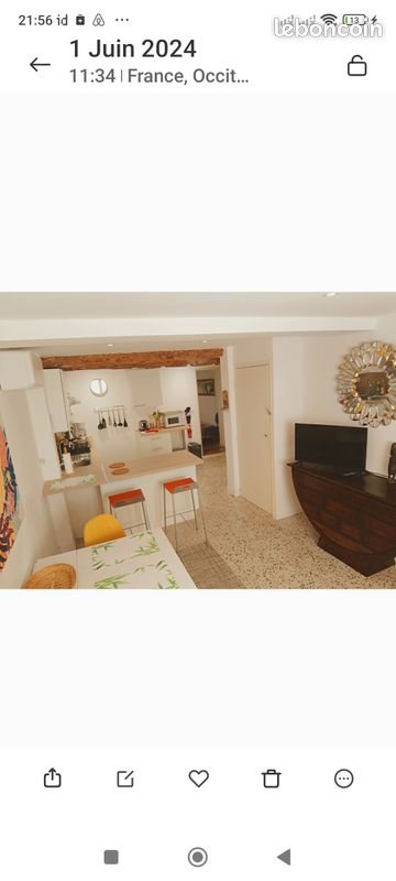 Disponible jusqu'à fin mai. Loyer 650€ électricité, internet et eau inclus . Grand studio meublé, entièrement équipé, tout confort . Hyper centre du vieux village de Gruissan, a deux pas de toutes les commodités .