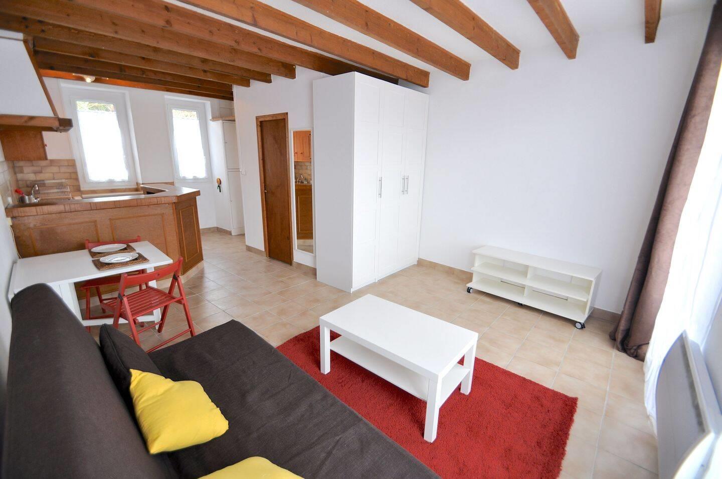 Dans petit immeuble à proximité d’une placette récemment aménagée, sur le chemin des impressionnistes, proche du centre ville et du château, lumineux studio traversant (exposition sud) avec vue sur la vallée et sans vis-à-vis, Comprenant: Entrée, cuisine à l'amé...