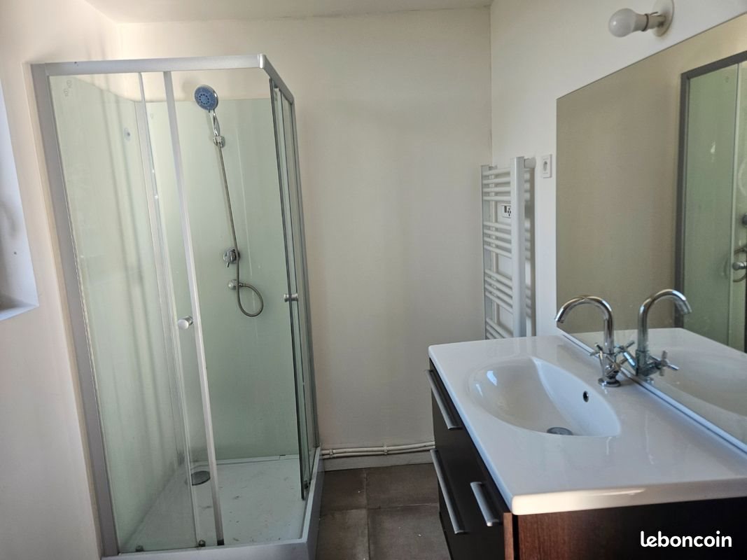Maison rénovée dans un corps de ferme sécurisé d'un portail électrique comprenant deux chambres salon séjour cuisine ouverte salle de bain wc avec cabine de douche fenêtre double vitrage avec volet électrique places de parking poêle à granulés neuf
