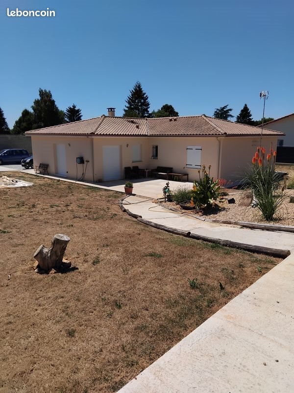 A proximité du centre ville dans un quartier très calme, maison de plain-pied, construction de 2022 économe (Rt 2012) 125 m2 accès Pmr, assainissement collectif conforme, chauffage par pompe à chaleur réversible 2 splits un dans la pièce de vie, un dans le couloir donnant sur le côté nuit, un poêle à bois dans la pièce de vie, volets roulants motorisés côté jour et battants côté nuit présence d'un adoucisseur ainsi qu'un ballon d'eau chaude thermodynamique dans le cellier où l'on peut stocker une machine à laver un grand réfrigérateur un congélateur vertical un sèche linge et des étagères de stockages. Coté jour nous entrons dans une grande pièce de vie de 50m2 avec sa cuisine équipée, poêle à bois placard, meuble du salon en accord avec cette cuisine. Coté nuit 4 chambres dont 2 avec placards, 12.8 m2, 11.49 m2, 10.65 m2, 17 m2, radiateurs électriques économes dans 3 chambres. Salle d'eau et Wc accès Pmr. Sur un terrain de 1449 M2 avec piscine 8 4 sécurisée tout est prêt si vous souhaitez raccorder une pompe à chaleur , jardin et garage non attenant de 50 m2. Chemin d'accès privé pour accéder à la maison tout est clos de mur portail 4m, électrique avec visiophone interphone digicode. Les informations sur les risques auxquels ce bien est exposé sont disponibles sur le site Géorisques : Consommation énergie primaire : 63 kWh/m2/an Montant estimé des dépenses annuelles d'énergie pour un usage standard : entre 640 euros et 930 euros sur les années 2022, 2023, 2024 (abonnements compris).