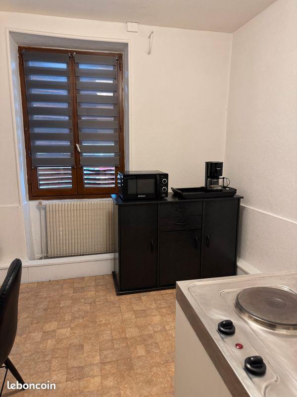 Meublé Lezoux centre exclusivement pour 1 personne. 1 chambre avec lit 140 et placard. 1 pièce à vivre avec plaques éléctriques, frigo, micro onde, cafetière, vaisselle etc .... Coin douche Wc. Convient pour pied à terre ou déplacements professionnels. Appartement raccordé au réseau fibre. Loyer 390 € toutes charges comprises ( chauffage, eau électricité, poubelles ) Possibilité de louer sur courtes période ( minimum 3 mois). Avant toute visite il vous sera demandé vos ressources pour payer le loyer. Pour le montage du dossier veuillez fournir : Copie carte d 'identité, dernier avis d'imposition, 3 derniers bulletins de salaire ou contrat de travail, dépôt de garantie = 1 mois de loyer dés l entrée dans les lieux. Paiement du 1er loyer dés l arrivée. Possibilité de demander un garant. Questions par sms et mail possible.