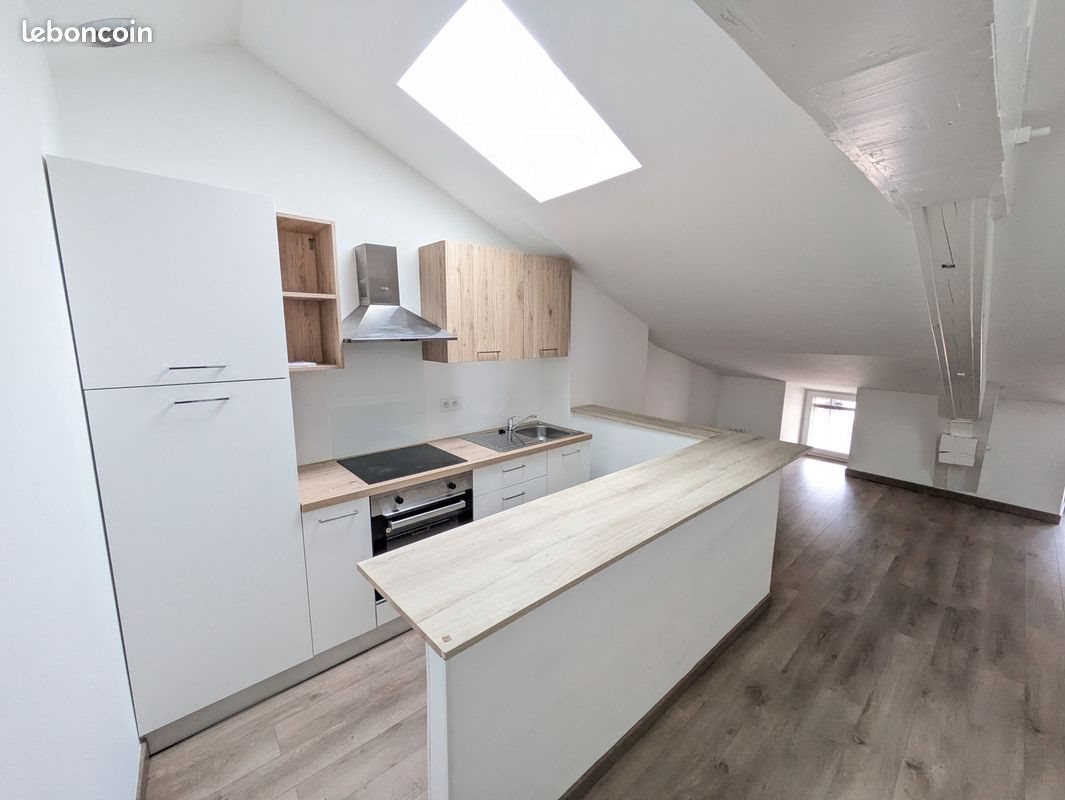 Situé au troisième et dernier étage d'un petit immeuble sur la Place de la Paix, je propose à la location ce superbe appartement T2 entièrement refait à neuf. C'est un logement avec beaucoup de cachet, un peu mansardé, avec de magnifiques poutres apparentes qui lui donnent un charme fou. Il offre une surface au sol de 50 m² (32 m² en Loi Carrez), ce qui le rend très spacieux et agréable à vivre au quotidien. La pièce de vie est particulièrement lumineuse et chaleureuse. Elle intègre une cuisine ouverte équipée (four, plaques vitrocéramiques, frigo et congélateur) avec une table bar très conviviale. L’Appartement dispose également d'une chambre cocooning et d'une salle de bain avec douche. L'isolation a été entièrement refaite pour garantir un confort thermique parfait toute l'année, complétée par du double vitrage et des radiateurs électriques performants de dernière génération. Vous profitez ici du calme du dernier étage, tout en ayant le marché et les commerces juste au pied de l'immeuble. Le stationnement est facile et gratuit juste à côté. Le loyer est de 590 € plus 10 € de charges de copropriété. Louant en direct propriétaire, vous n'aurez aucun frais d'agence à prévoir. Je demande simplement la garantie Visale ou un garant pour le dossier. L'appartement est disponible de suite. Merci de me par messagerie pour vous présenter brièvement (situation, revenus) avant d'organiser une visite. Si l'annonce est en ligne, l'appartement est toujours disponible.
