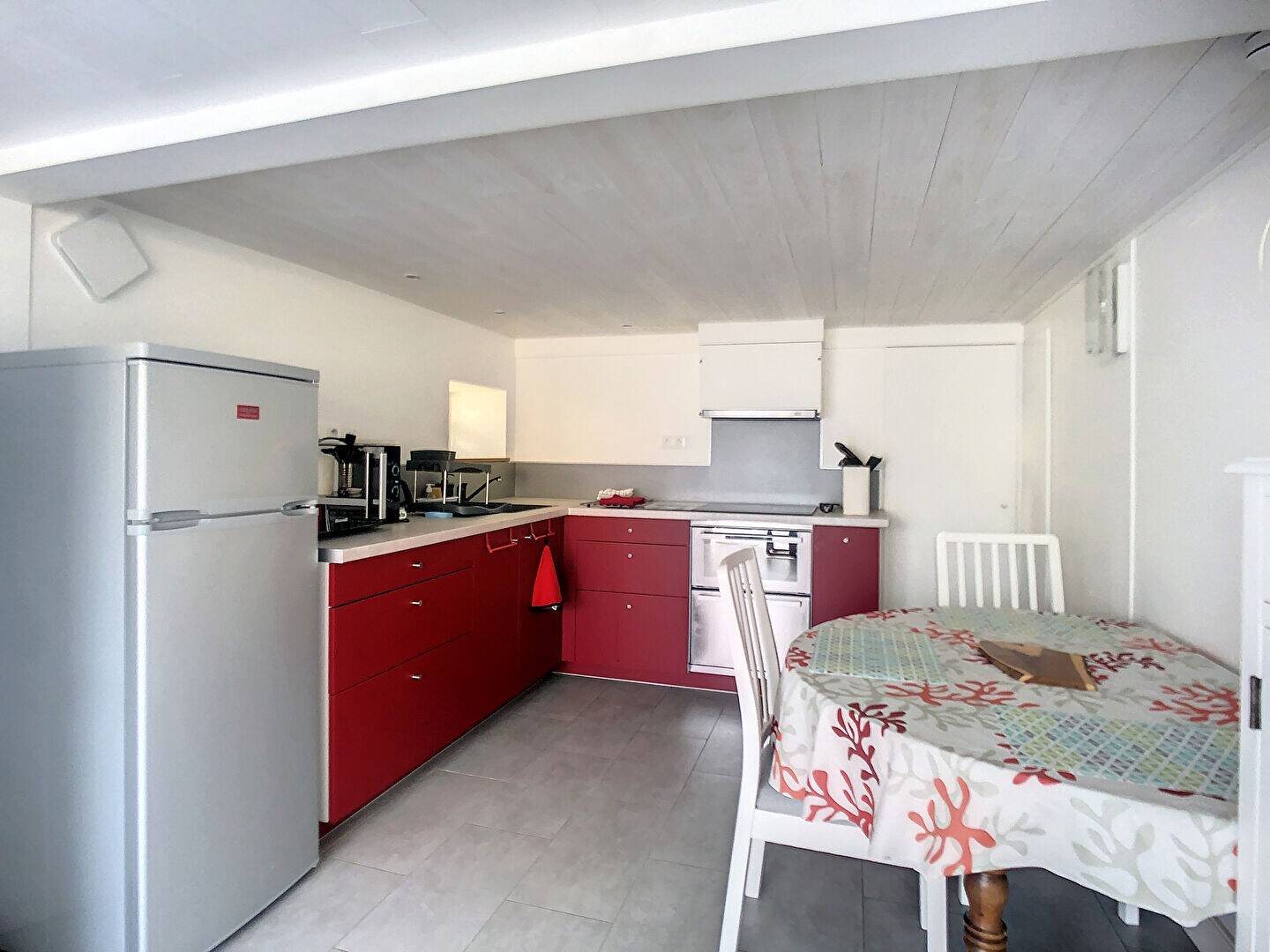 Au rez-de-chaussée d'un pavillon de 2 étages, ce meublé indépendant, décoré avec soin vous accueille pour une location à l'année. La pièce de vie, éclairée par une grande baie est équipée d'un coin cuisine. Une chambre, de grands placards, 1 salle d'eau et des toilettes complètent cet appartement de 42 m². Vous bénéficiez en sus d'une terrasse dans le jardin du propriétaire. Cet appartement meublé se trouve près du centre de Saujon, à 10 mn à pieds de tous les commerces. Les 86 € de charges sont forfaitaires et couvrent le chauffage, l'électricité, l'eau et les ordures ménagères.