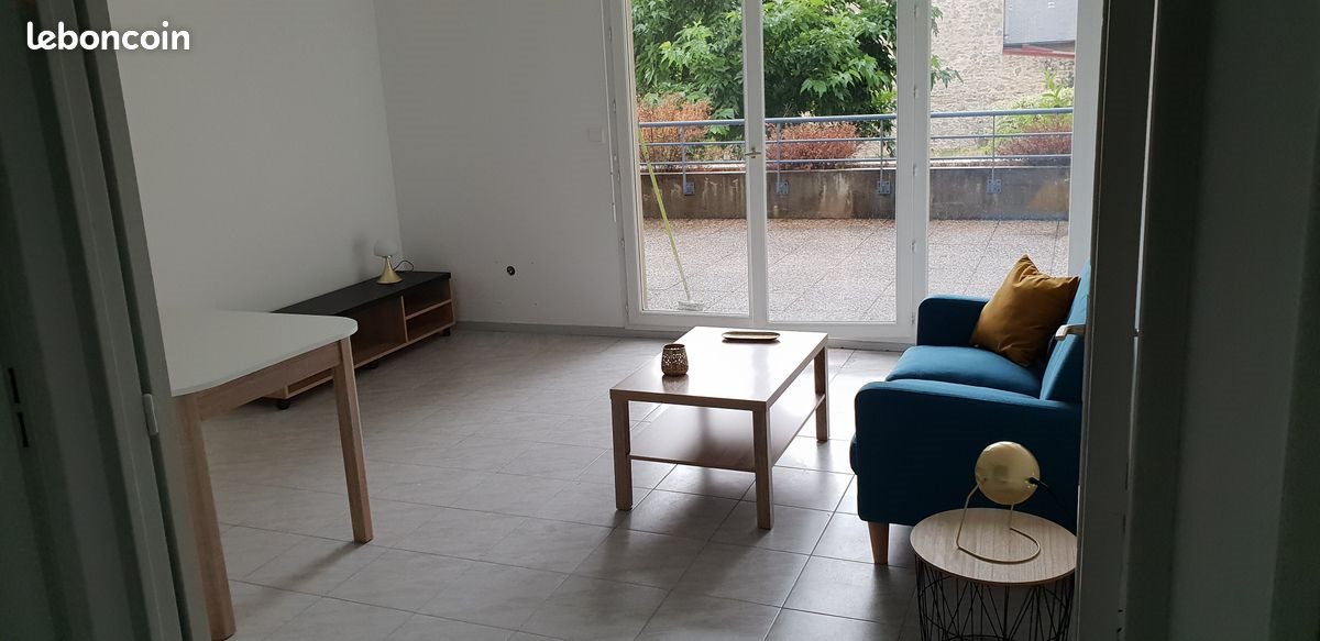 Loue appartement meublé de 52 m2 avc terrasse de 50 m2 donnant sur un parc arboré fermé, au rez de chaussée d'une résidence sécurisée. Il se situe au centre-ville de Guéret, proche de l'hôpital, de l'IFSI-IFAS, d'établissements scolaires et de commerces. L'appartement se compose : - d'une cuisine équipée avec porte-fenêtre donnant sur la terrasse (réfrigérateur, four, plaques de cuisson et rangements, vaisselle) - d'un salon de 17 m2 avec baie vitrée (canapé, table basse, meuble Tv, table et 4 chaises) - d'une chambre de 11 m2 avec lit, chevet et rangement. - d'une salle de bains avec baignoire, meuble avec vasque et rangement, sèche-serviette. - Wc séparés. - d'une grande terrasse de 50 m2 donnant sur le parc. L'appartement est équipé de fenêtres en double vitrage, de la fibre, de radiateurs électriques à inertie, d'un visiophone. La porte d'entrée de l'appartement donne un accès direct, de plein pied, à l'arrière de la résidence donnant sur un paking public.