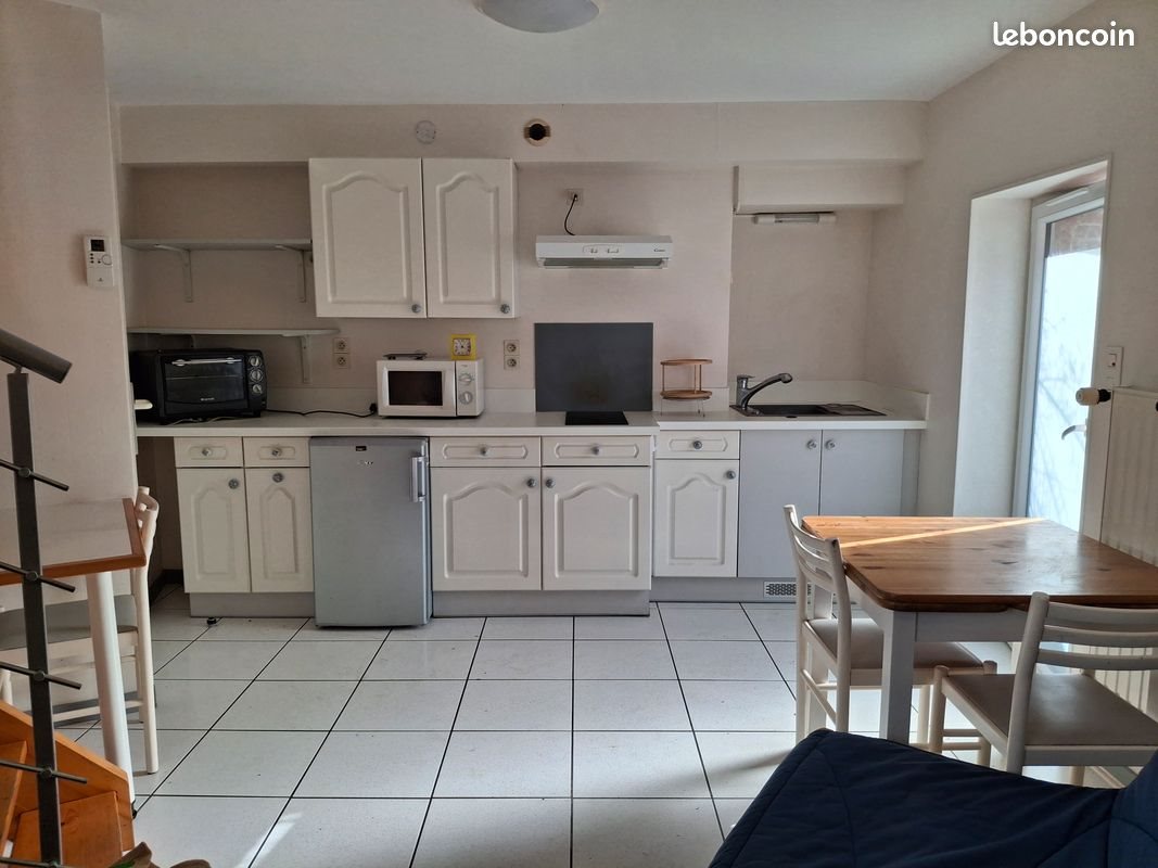 Loue au centre du bourg , charmant appartement de 32m2 sur 2 niveaux, comprenant 2 pièces : - au rez de chaussée : une pièce principale avec cuisine équipée, un Wc - à l'étage: une chambre avec salle d'eau. Accès côté rue ou côté cour avec petit espace terrasse.