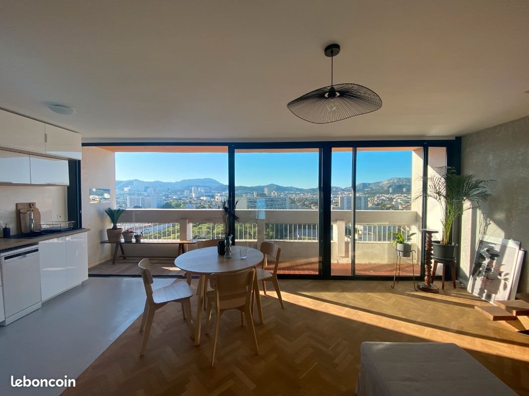 A louer duplex meublé de 50 m² situé au 20ᵉ étage, lumineux (exposition plein Sud) dans la résidence Le Brasilia, conçue par l’architecte Fernand Boukobza et classée Patrimoine du Xxᵉ siècle, avec vue sur Le Corbusier et les Calanques. Appartement : - Séjour avec cuisine équipée - Grandes baies vitrées double vitrage - Canapé + table ronde + 4 chaises - Balcon filant sur salon - Chambre avec lit + dressing - Salle de bain meublée - Deuxième balcon côté chambre Confort : - Résidence sécurisée avec gardiennage 24/7 - Chauffage collectif au sol (inclus dans les charges) - Climatisation - Parking privatif extérieur (non attitré) - Service réception colis Emplacement : - Métro Rond-Point du Prado à 5 mins à pied - Accès Tunnel Prado-Carénage à 2 mins en voiture - Parc Borély à 15 mins à pied - Plages du Prado à 20 mins à pied - Commerces à proximité immédiate Conditions : - Loyer : 1 220 € / mois - Charges : 180 € / mois - Électricité à la charge du locataire ? Visites prévues les lundis 9 et 16 mars de 9h à 19h. Nous si d’autres créneaux sont souhaités. ? Disponible à partir du 10 avril 2026.