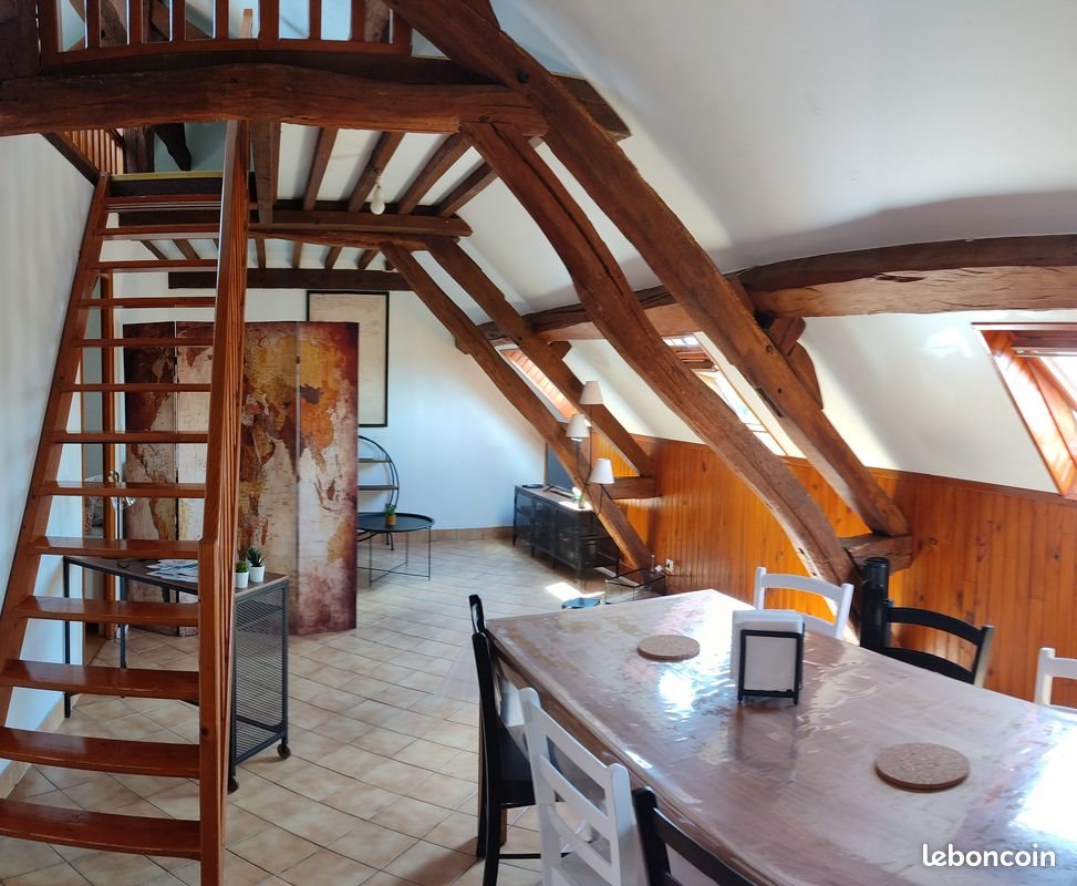 Cet appartement meublé et mansardé offre tout le confort nécessaire. Il se compose d’une cuisine entièrement équipée avec des électroménagers récents et de nombreux ustensiles, ouverte sur un bel espace salle à manger et salon avec télévision. L’Appartement dispose de deux chambres avec placards intégrés, ainsi que d’une salle de bain spacieuse et fonctionnelle. La consommation d’électricité est à la charge du locataire. Les charges mensuelles de 30 € comprennent l’électricité des parties communes, une provision pour l’eau et les ordures ménagères.