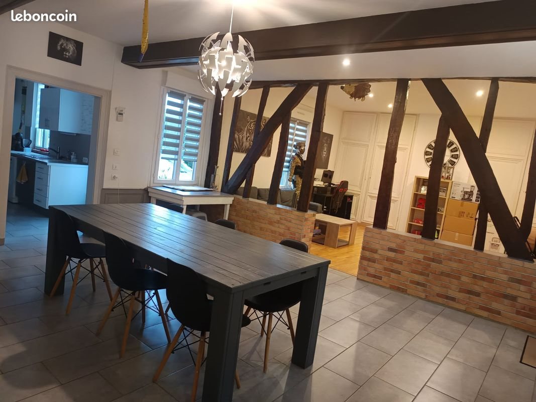 Maison 4 pièces 91 m² Plain pied Séjour, salon, cuisine aménagée, salle de bain avec douche et baignoire, wc, une chambre étage : combles aménageables Deux caves, jardin ,dépendances, garage Entrée porte cochère avec servitude de passage Plus de photos sur demande