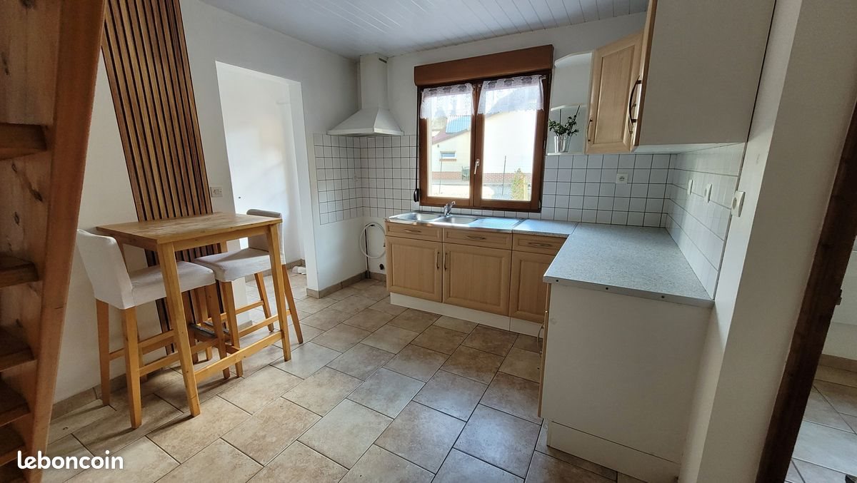 Maison Campagne (sur 2 niveaux) Loyer 570 EUROS/mois (charges non comprises) Chauffage électrique Assainissement collectif - Rez de chaussée : Petit hall d'entrée, Wc (à part), Sdb avec douche + meuble vasque, Cuisine aménagée (prévoir gazinière et frigo), Séjour attenant au coin cuisine - Etage : 2 chambres avec parquet flottant, une pièce supplémentaire mansardée pouvant accueillir un coin dressing ou un coin bureau - Menuiseries double vitrage équipées de volets roulants au rez-de-chaussée - Extérieur : - garage 1 véhicule accessible par servitude commune (point d'eau à l’intérieur) - Terrasse privative d'environ 25 m2 en rez-de-jardin Nous exclusivement par téléphone le soir à partir de 19H00 et le week-end Aucun renseignement par retour de mail