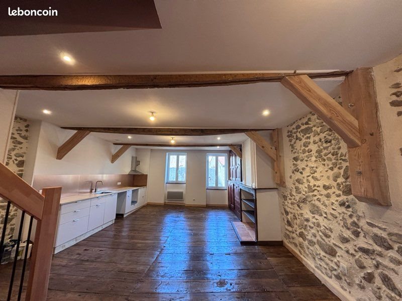 À louer bel appartement triplex d’environ 130 m², entièrement rénové, situé au cœur de Castillon-en-Couserans. Appartement lumineux avec beaucoup de charme : pierres apparentes, poutres et parquet bois, offrant de beaux volumes. Composition Rez-de-chaussée • Entrée • Espace buanderie / branchement lave-linge 1er étage • Grande pièce de vie avec cuisine ouverte • Suite parentale avec chambre, dressing et salle d’eau 2e étage • 2 chambres • Salle d’eau • Palier Équipements • Plaque électrique • Hotte aspirante • Chauffage électrique individuel • Ballon d’eau chaude • Climatisation réversible dans certaines chambres • Double vitrage Conditions de location • Loyer : 750 € / mois • Charges : environ 7 € / mois (taxe ordures ménagères – ajustée selon la taxe annuelle) • Dépôt de garantie : 750 € • Location vide Dossier locataire Le logement est soumis à une étude de solvabilité (Gli ou garantie Visale). Merci de vous présenter brièvement dans votre message (situation professionnelle, type de contrat, revenus et nombre d’occupants) afin de faciliter l’étude des dossiers.