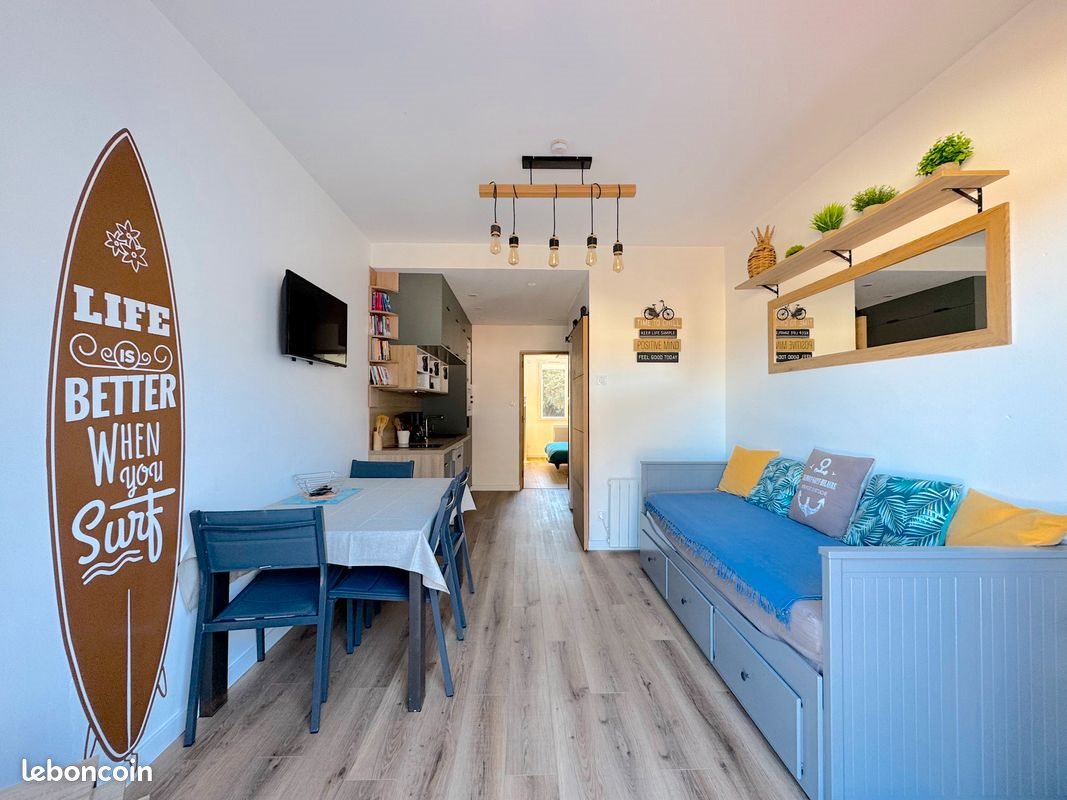 Bonjour, nous louons notre appartement meublé pour l’année complète 2026, entièrement refait à neuf en 2025. Il est situé au premier étage d’une petite résidence située à Talmont-Saint-Hilaire, secteur Port Bourgenay, avec la plage du Veillon à 400 m. Idéal pour les amoureux de la nature, du surf ou du kite. Il comprend une pièce de vie exposée sud, avec une baie à galandage donnant accès à une terrasse partagée. Une cuisine aménagée et équipée, ouverte sur l’espace de vie. Une salle d’eau avec vasque, douche et Wc, ainsi qu’une chambre avec placard. Place de parking privative et résidence très calme. Loyer : 740 € hors charges. Estimatif des coûts annuels d'énergie entre 640€et 910€ par an. Pri moyens des énergies indexés au 1er janvier 2021