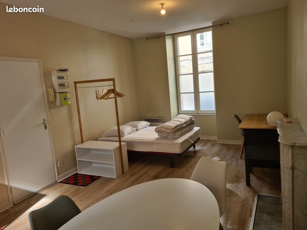 A louer studio meublé et équipé en Rez de chaussée surélevé Lumineux en centre-ville de Laval rive gauche - proche rue de la Paix Cuisine séparée de la pièce principale Salle d'eau avec Wc Chauffage individuel électrique Premier Contact Par Message - Dossier A Fournir Loyer hors charges 360 euros par mois. 30 euros de charges par mois pour eau et charges de copropriété. Dépôt de garantie : 720€ Disponible 01/04