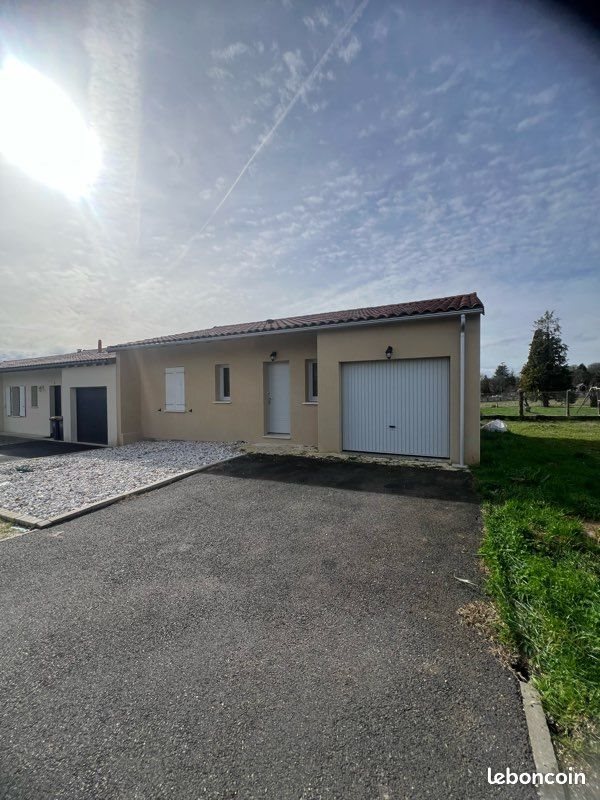 À louer maison récente de 90m2 situé à Trois-Palis (16730), dans un petit lotissement calme. La maison se compose de : - Une pièce de vie lumineuse - Une cuisine neuve équipé ( four, hotte, frigo) - 2 chambres - Une salle de bain - Wc séparés - Un garage - 2 place de stationnement privatives - Chauffage électrique avec Clim réversible et radiateur - compteurs individuels eau et électricité (contrat à la charge du locataire) - Un jardin clôturé avec terrasse Maison mitoyenne d’un seul côté, Environnement résidentiel et calme À quelque minutes d’Angouleme Disponible à partir du Loyer 800€/mois (hors charges) Dépôt de garantie : 800€ Dossier sérieux demandé.