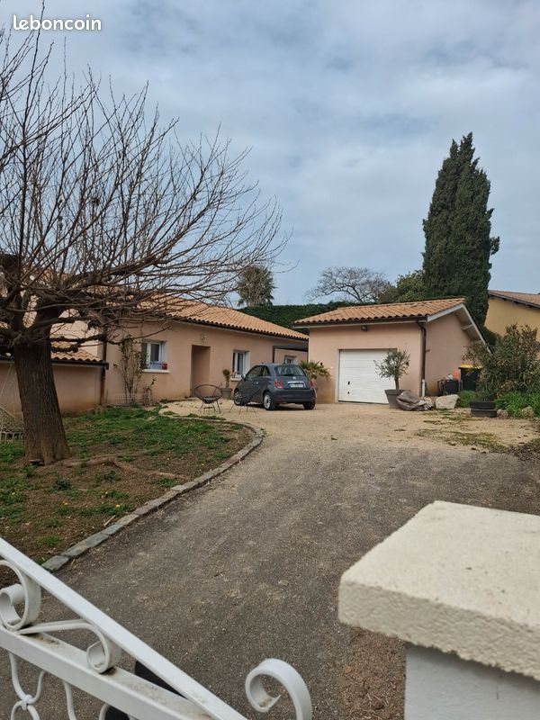 Loue maison plein pied de 110m2 sur terrain clos et arboré Dans village Proche de toutes commodités et commerces Chauffage au fioul 3 chambres dont 2 avec placards muraux 1 garage indépendant avec buanderie Portail et interphone électrique Libre Loyer 1050€/ mois