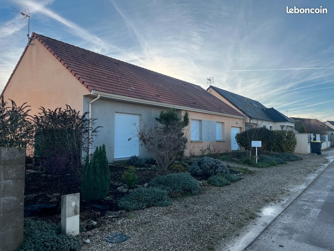Maison de plain pied à Chablis à 5 min à pieds du centre ville dans un secteur très calme 105 m2 + 25 m2 de garage 4 chambres avec dressing Buanderie cuisine équipée ( lave vaisselle , hotte , plaque de cuisson , four , micro onde, table et chaises ) salle de bain avec double vasque et douche italienne terrasse avec pergola jardin arboré avec cabanon Chauffage au sol par pompe à chaleur faible consommation électrique Dpe A libre au 1/04
