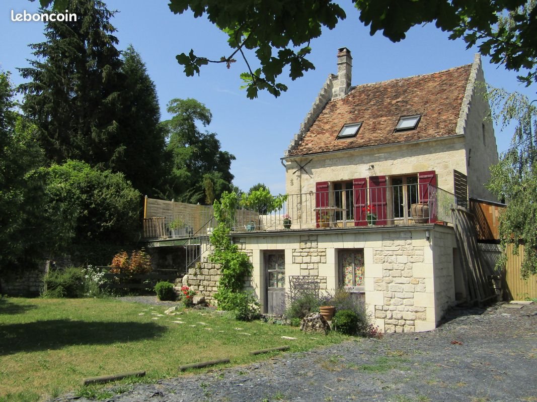 Maison de caractère située dans village à 12mn au Sud de Soissons. Calme,Orientée plein sud avec grande terrasse de plus de 60m2 avec vue sur espace verdoyant. . Idéal pour se ressourcer, nombreuses balades possible. La maison est équipée(frigidaire,gazinière, four, micro-onde, lave-linge...)et peut être meublée. Elle comprend un rez de chaussée de 35m2 avec cuisine, séjour et salon. A l'étage 2 chambres, salle de bain, wc et un grand espace palier. Le chauffage est au fuel (radiateur dans chaque pièce) avec une chaudière à condensation faible consommation (dpe:2010). La cour fermée dispose d' emplacements de parking . Charges: eau, électricité, tom, entretien chaudière..